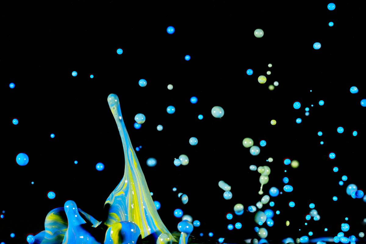Blaue-gelbe-Spritzerei